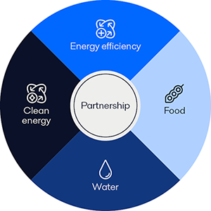 Our innovative technologies and solutions focus on energy efficiency, clean energy, food, and water, and it all starts with a circular mindset, the foundation of sustainability. By continuously optimizing our own operations and our customers’ processes for greater efficiency, resilience and lower emissions we contribute to a positive movement of the areas that society depends on, like food, pharma, water, energy and marine transportation.